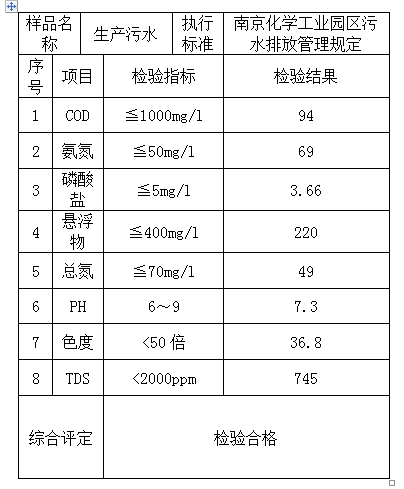 梅塞尔气体产品(南京)有限公司 水质检验报告单检验日期:2019/11/13