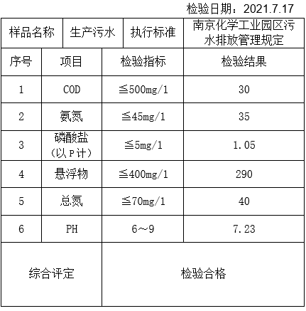 2021年7月水质检测报告单