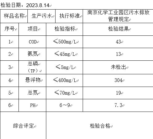 2023年8月水质检验报告单