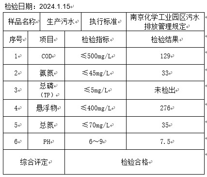 2024年1月水质检测报告单