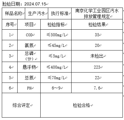 2024年7月水质检测报告单