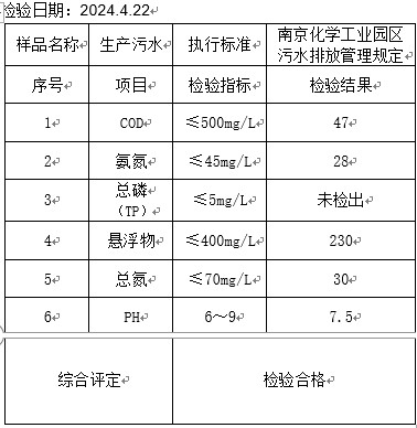 2024年4月水质检测报告单